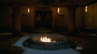 Jacob “Ciao, Kate. James. Jack” Hurley “è lì vicino al fuoco. Vi saluta…” Jack “L’ho sentito” Hurley “Cosa, riesci a vederlo?” Jack “Sì, riesco a vederlo” Hurley “Kate? Sawyer? Anche voi?” annuiscono, Kate “Quindi sei stato tu a scrivere i nostri nomi su quella parete” Jacob “Sì” Kate “Sun e Jin Kwon e Sayid Jarrah… Hai scritto i loro nomi sulla parete?” Jacob “Sì” Kate “è per questo che sono morti?” Jacob “Mi dispiace molto” Kate “Ti dispiace?” Hurley “Kate” Kate “No, voglio sapere il perchè. Voglio sapere che Sun e Jin e Sayid non sono morti invano” Jacob “Sedetevi qui e vi dirò per cosa sono morti. Vi dirò perchè ho scelto loro. E perchè ho scelto voi. E vi dirò tutto quello che c’è bisogno di sapere su come proteggere quest’Isola perchè non appena quel fuoco si spegnerà… uno di voi dovrà cominciare a farlo”.